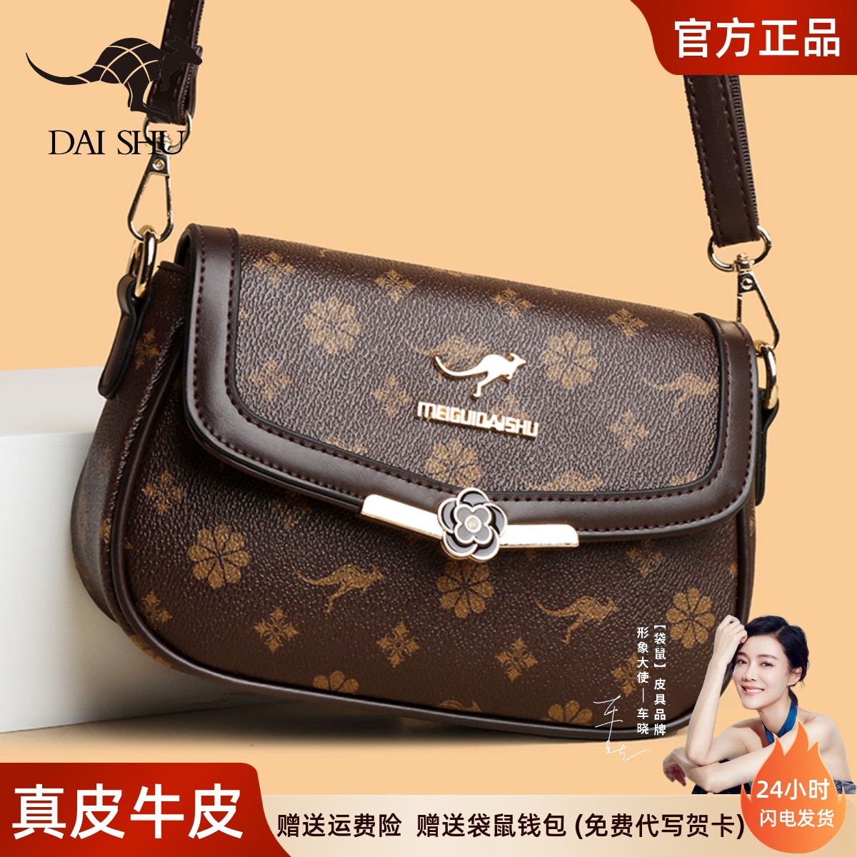 袋鼠真皮包包女斜挎包2025年新款妈妈款包婆婆小包中年女士单肩包