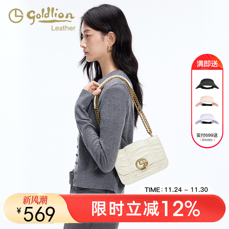 金利来优雅轻奢女士真皮包包时尚小香风新款链条单肩斜挎包牛皮潮
