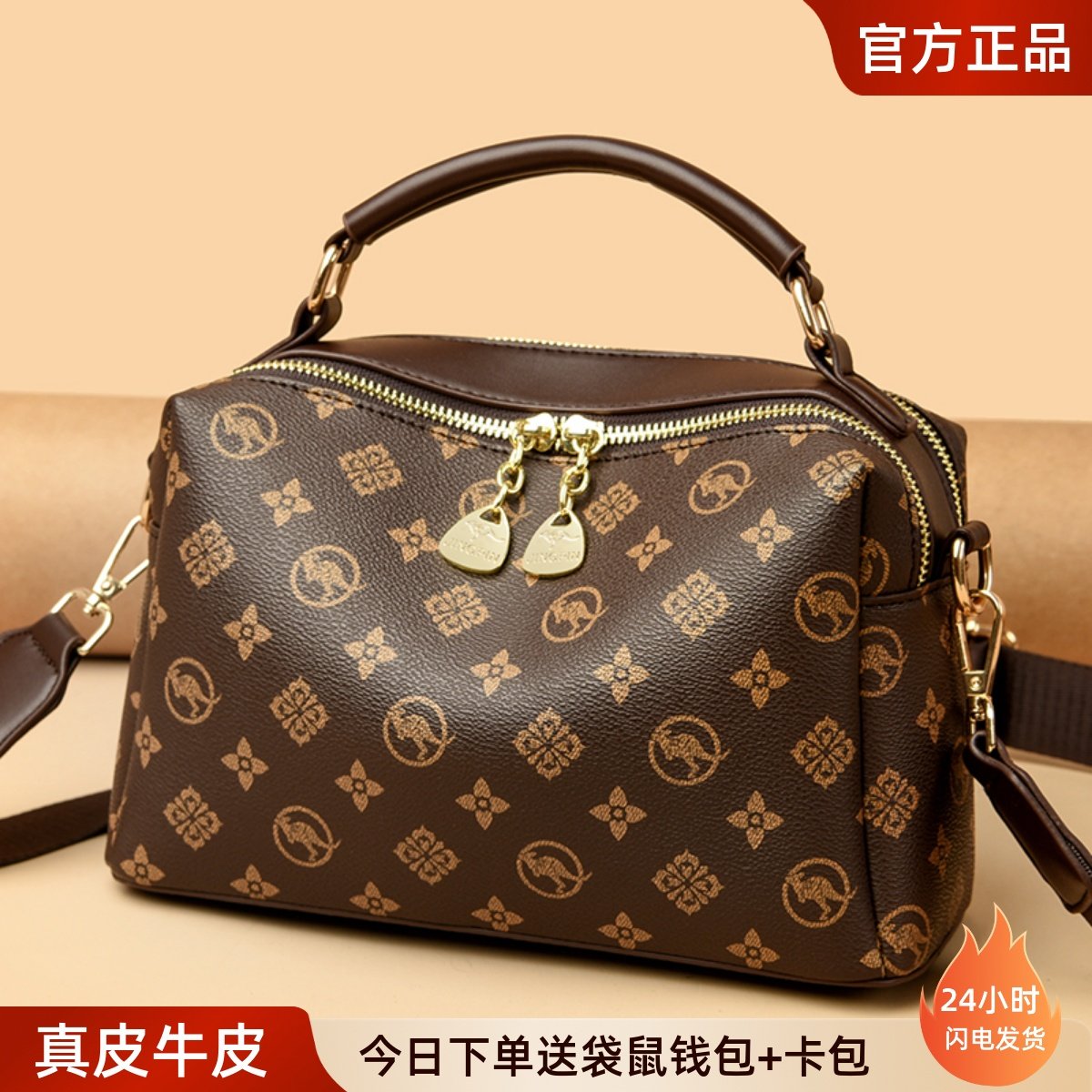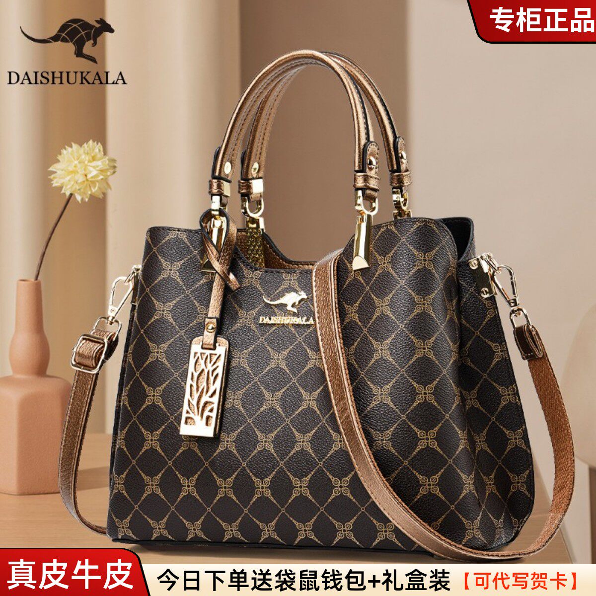 袋鼠真皮包包中年包2025新款大气手提包女大容量斜挎包送妈妈礼物