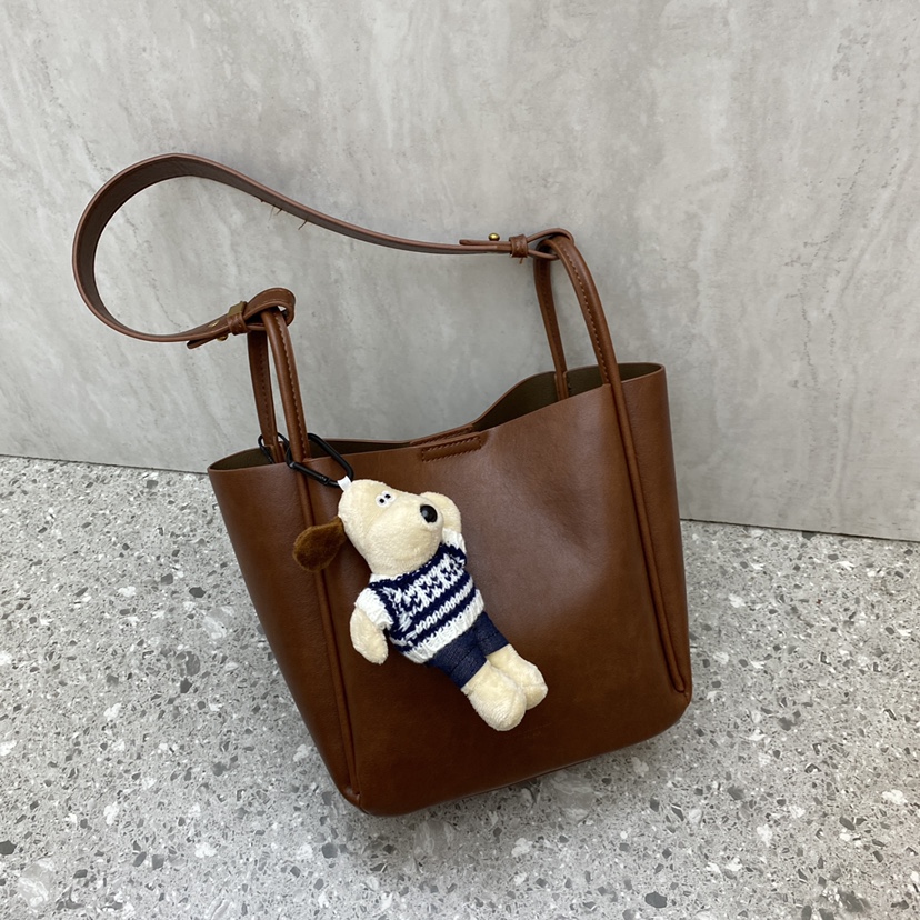 新款水桶包宽肩带斜跨包牛皮大包百搭通勤托特包休闲时尚单肩包