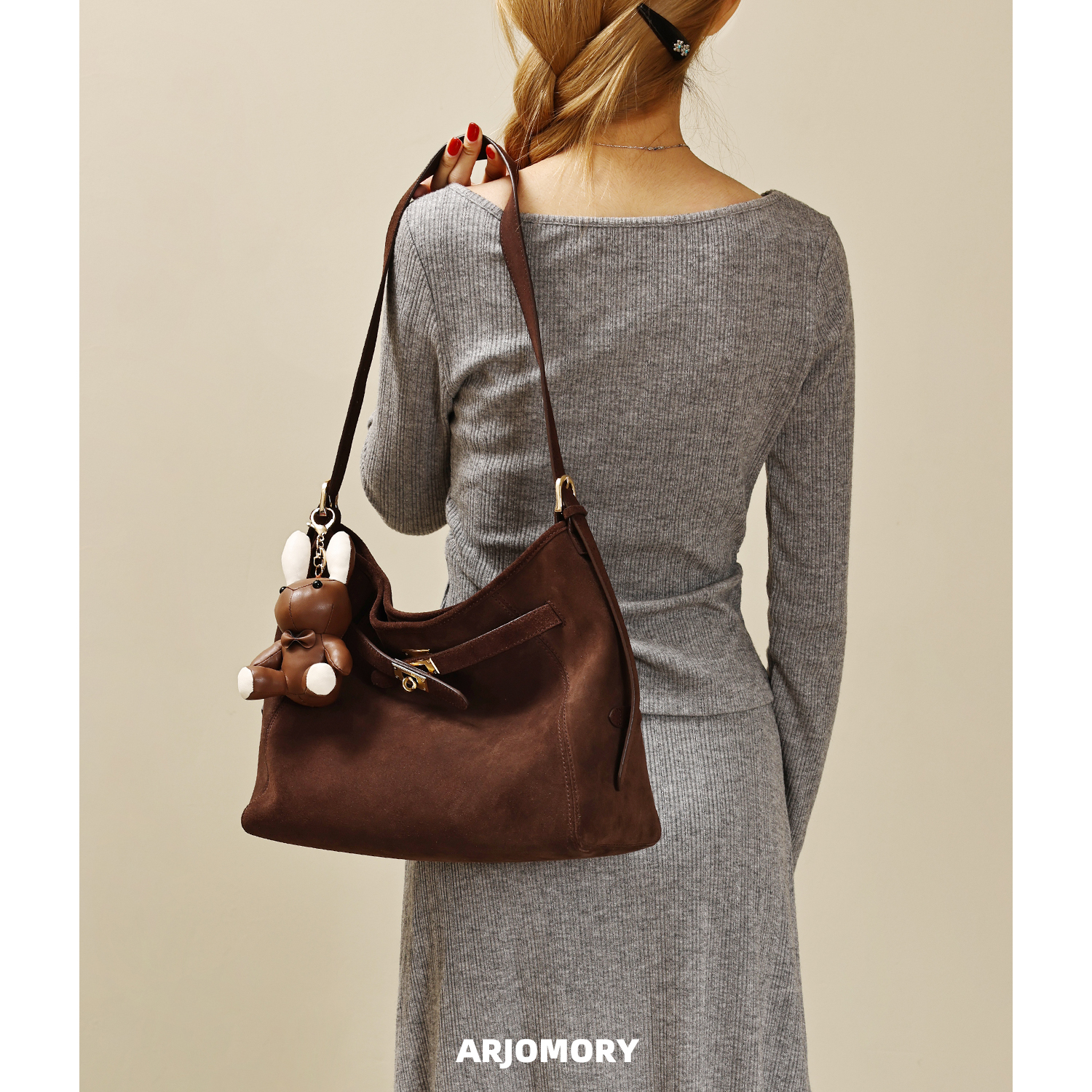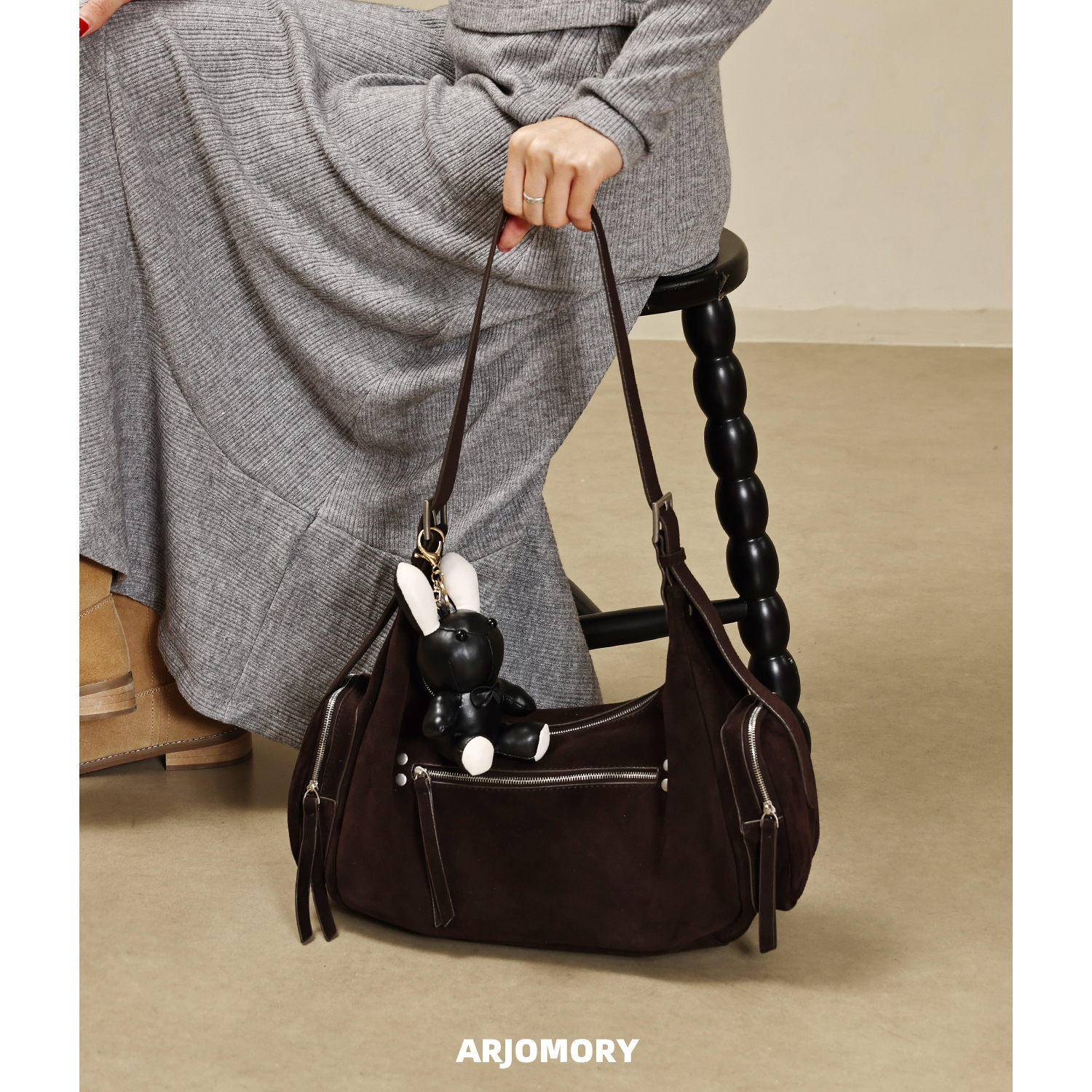 ARJOMORY小众设计简约麂皮绒腋下包女2025冬季复古休闲单肩斜挎包