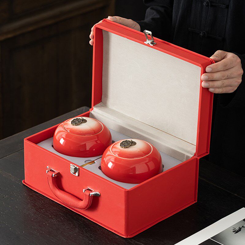 皮包陶瓷罐礼盒包装古树红茶金骏眉绿茶普洱茶通用密封罐空盒定制