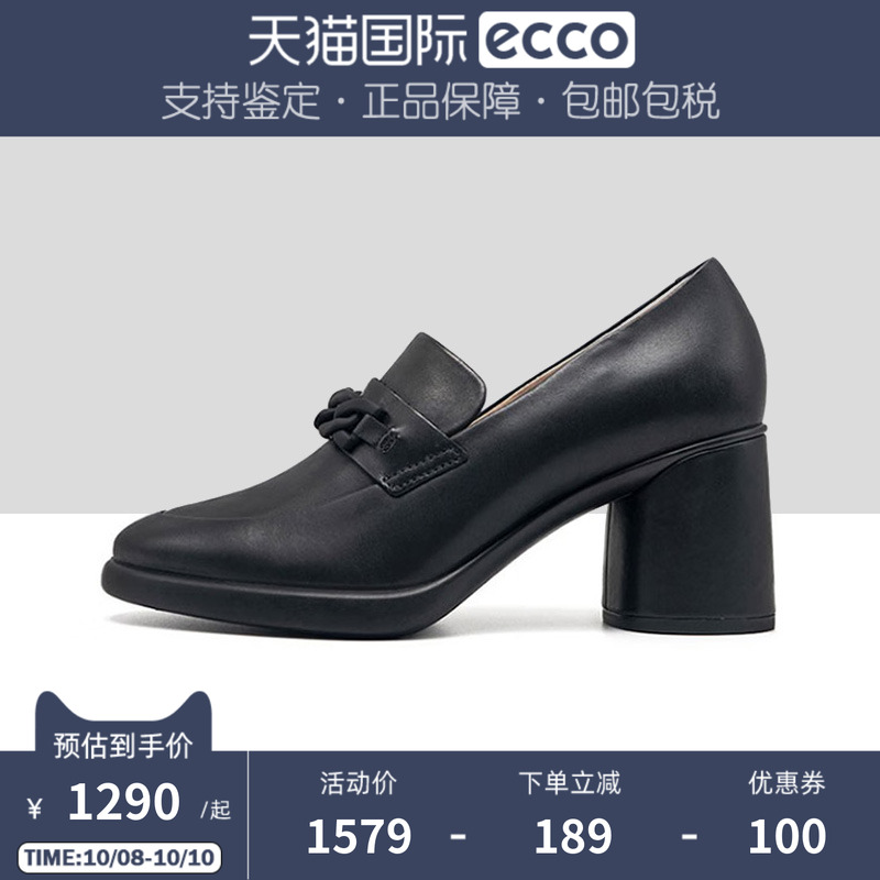 ECCO爱步女鞋2025新款高跟粗跟真皮包头单鞋 雕塑222643