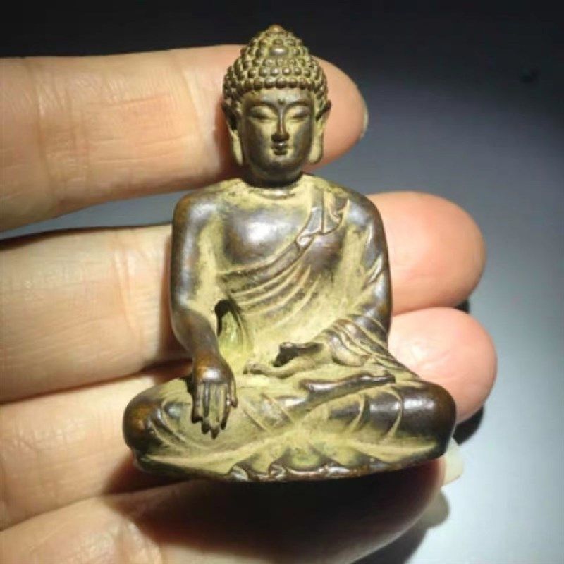 速发老摆器收藏紫皮包浆实古仿心释迦摩尼铜药师佛铜佛像小铜件老