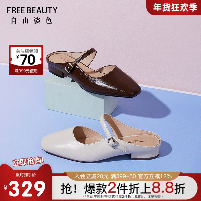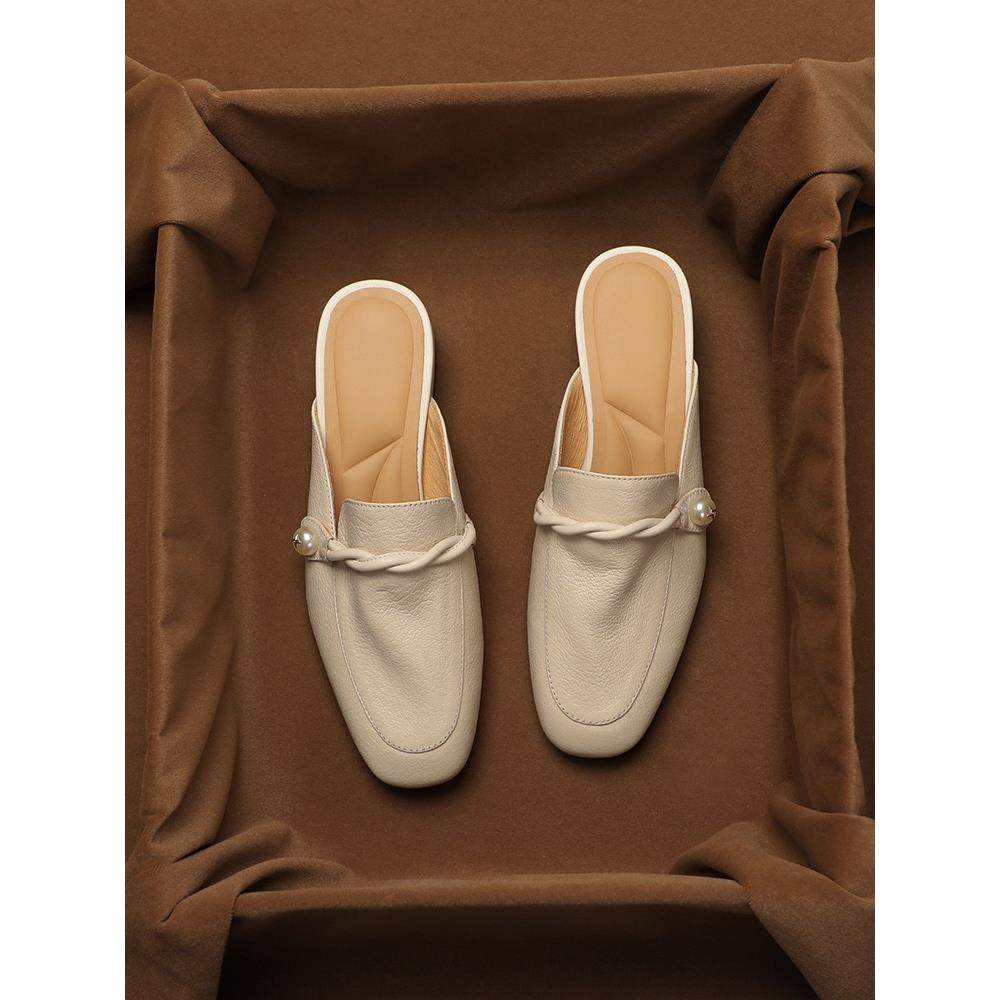 商场同款25年春夏新款自由姿色法式方头优雅低跟穆勒拖真皮包头拖