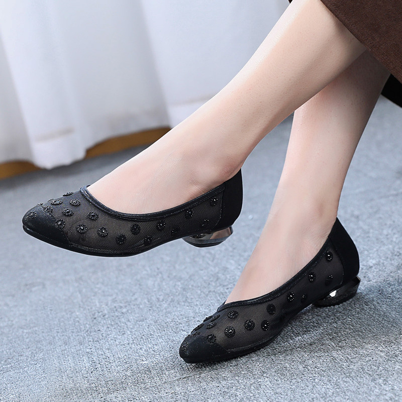 MILLIE'S/妙丽法式时尚真皮包头凉鞋女透气网纱温柔仙女风单鞋女