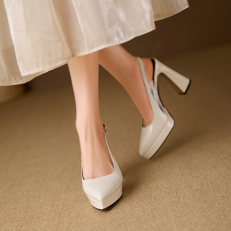 真皮包头凉鞋女士性感粗跟浅口防水台后空气质11厘米高跟鞋女夏季