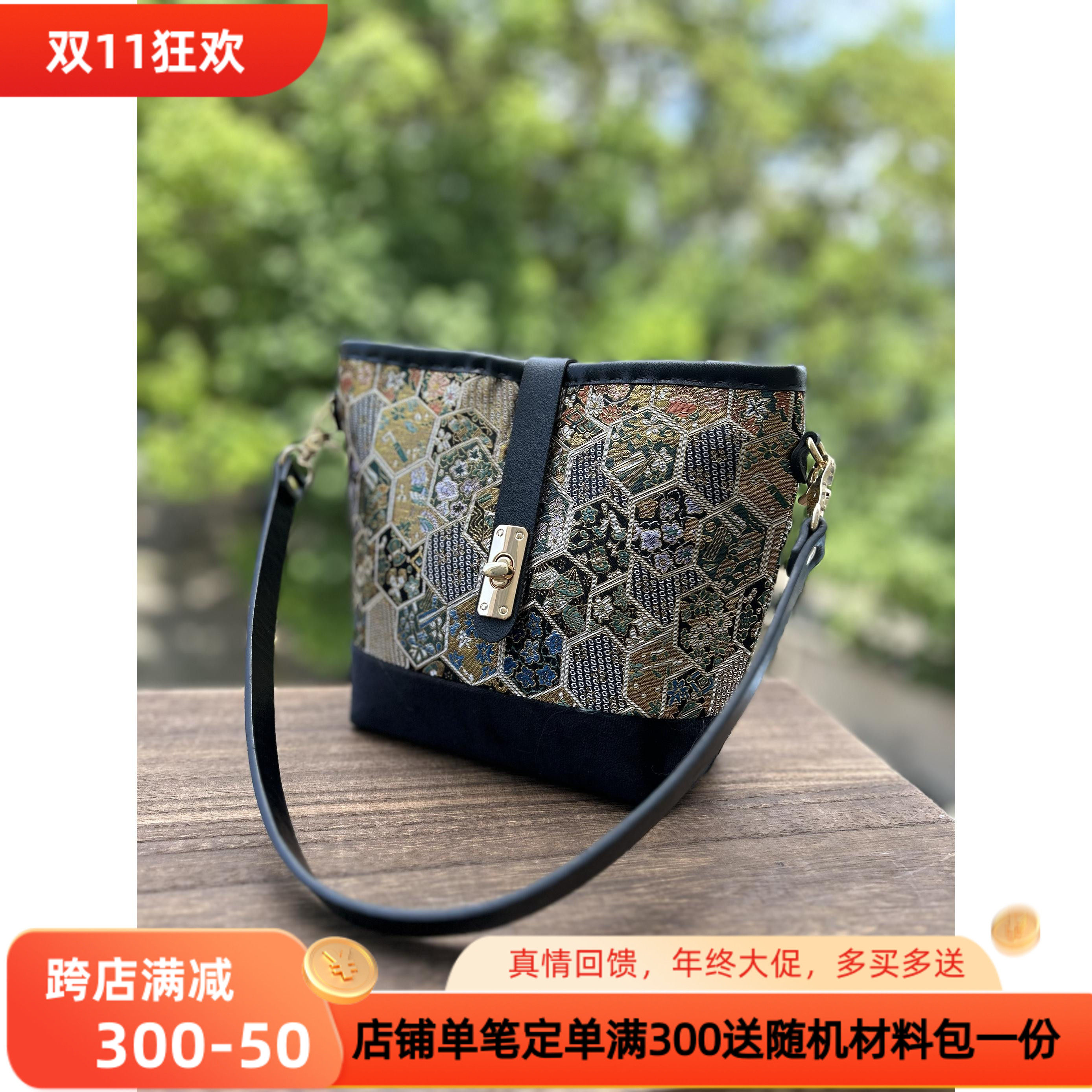 超纤皮包边单肩包非成品 手工布艺DIY材料包非成品含肩带皮搭扣包