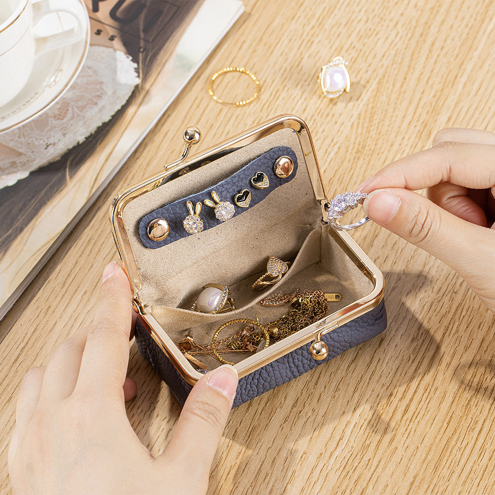 新款真皮创意精致首饰收纳包女戒指项链耳环收纳盒迷你零钱口红包