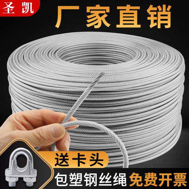 透明包塑钢丝绳大棚葡萄架遮阳网专用带皮包胶软拉线 线绳子34568