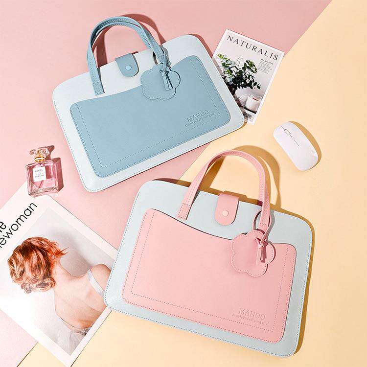 手提电脑包笔记本15.6女13.3寸14寸平板保护套可爱拼色清新pu皮包