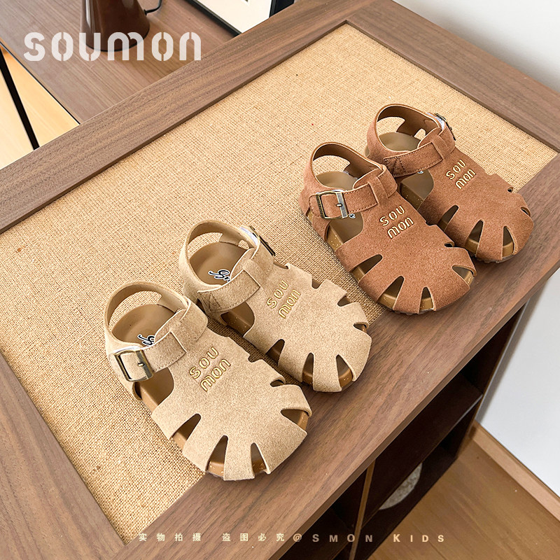 书萌儿童真皮包头镂空凉鞋2026夏季新款女童勃肯鞋厚底休闲罗马鞋