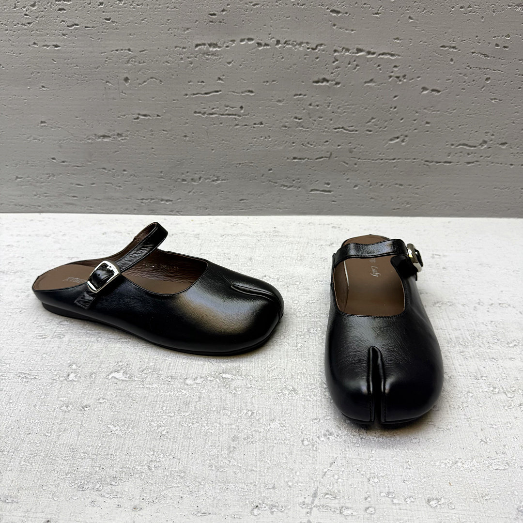 欧洲站欧货女鞋2026夏新款真皮包头半拖鞋平底一字扣舒适分趾凉拖