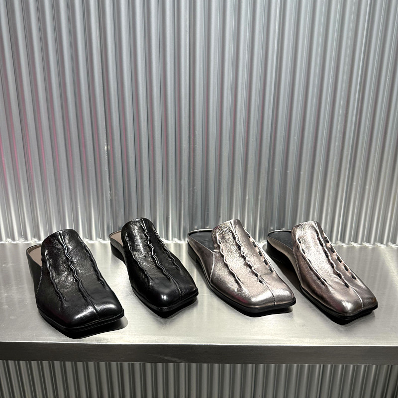 欧洲站真皮包头拖鞋女2026年春季新款欧货方头低跟懒人半拖外穿