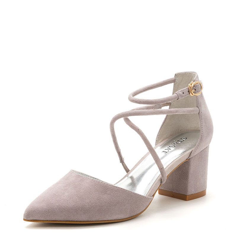 羊猄真皮包头凉鞋女一字带玛丽珍鞋子粗跟尖头侧空中跟SS81114580
