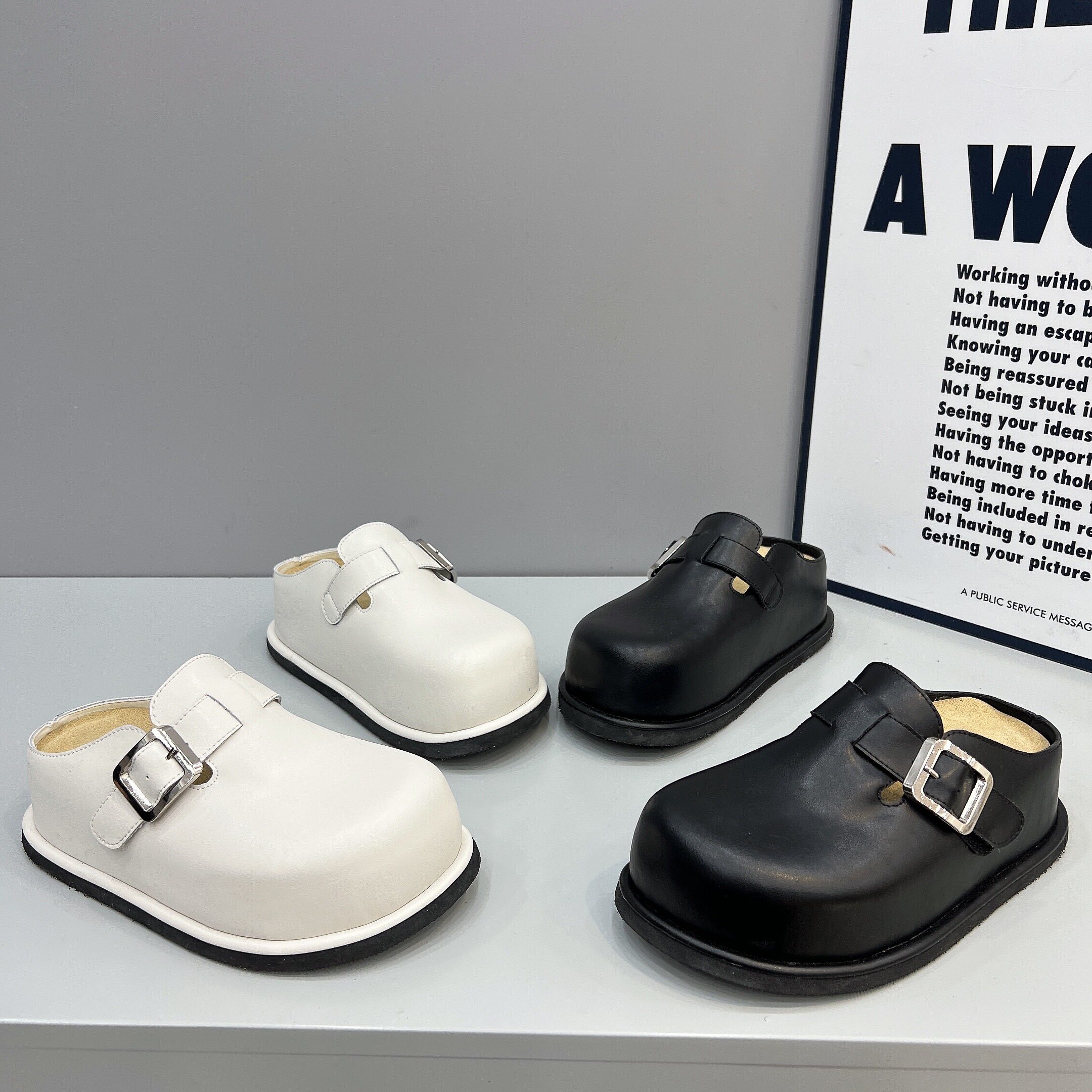 欧货2026新款真皮包头半拖鞋女5cm厚底内增高大头休闲时尚博肯鞋