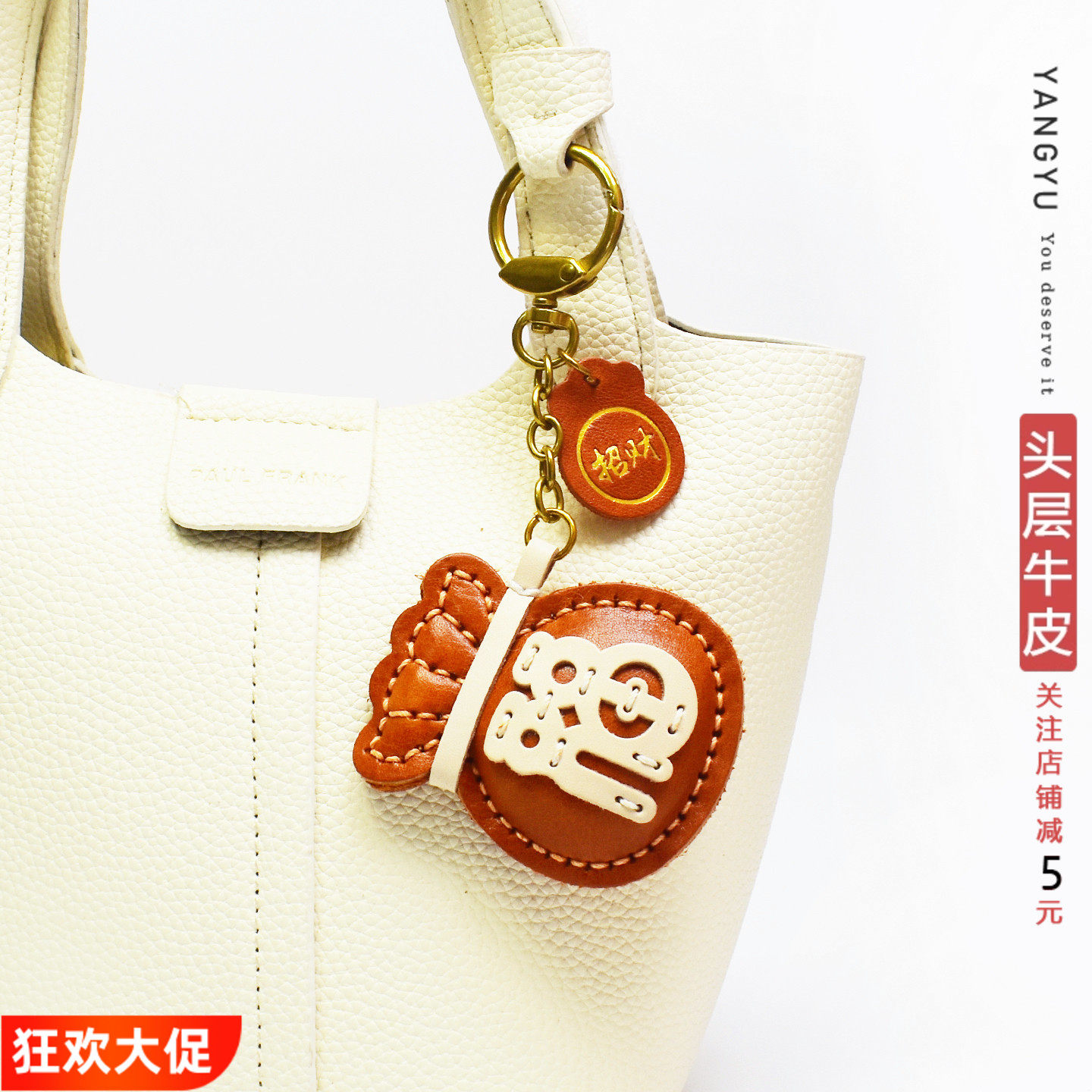洋芋【好运福袋】国风手工头层牛皮包挂饰植鞣真皮钥匙扣皮质礼物