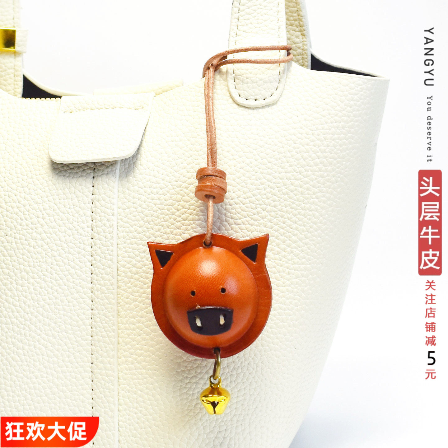 『平安小猪』北欧真皮包挂件汽车挂饰牛皮钥匙扣手帐毕业季伴手礼