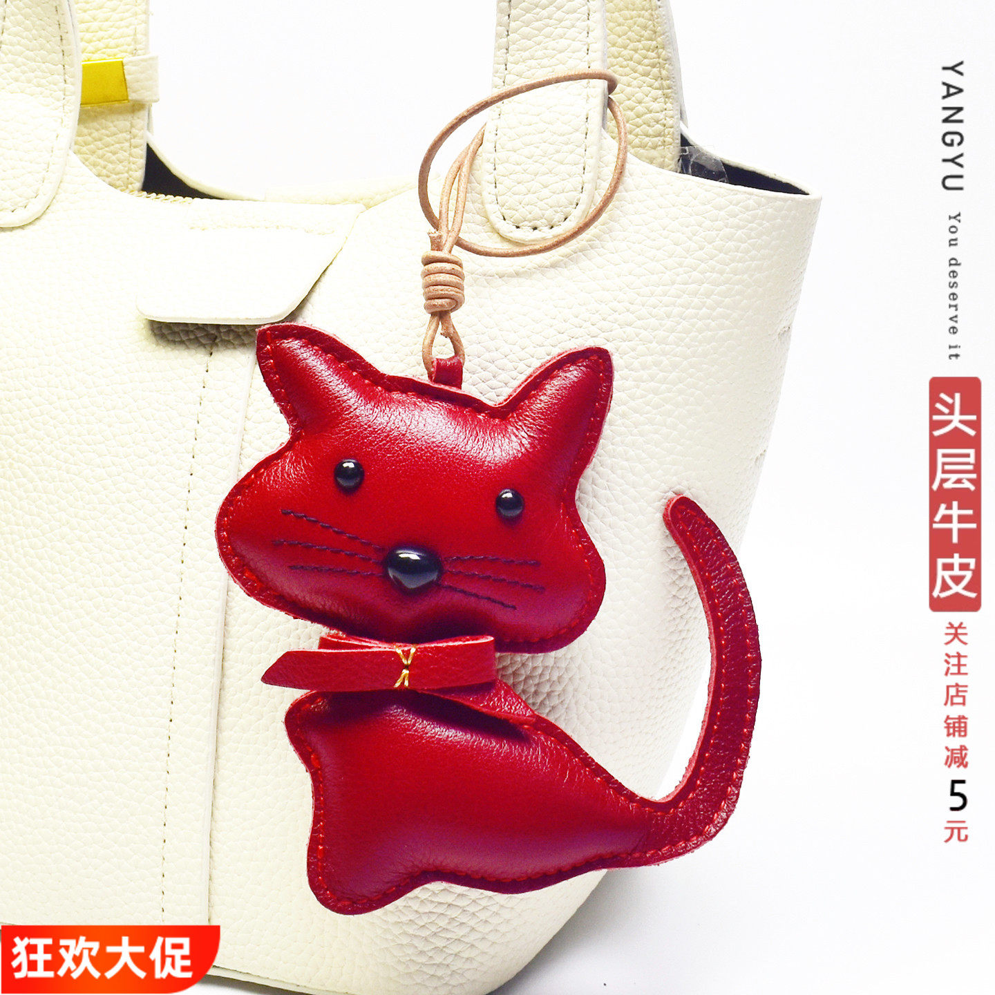 真皮乖巧猫咪~北欧ins汽车钥匙扣牛皮包挂饰挂件可爱动物手账书签