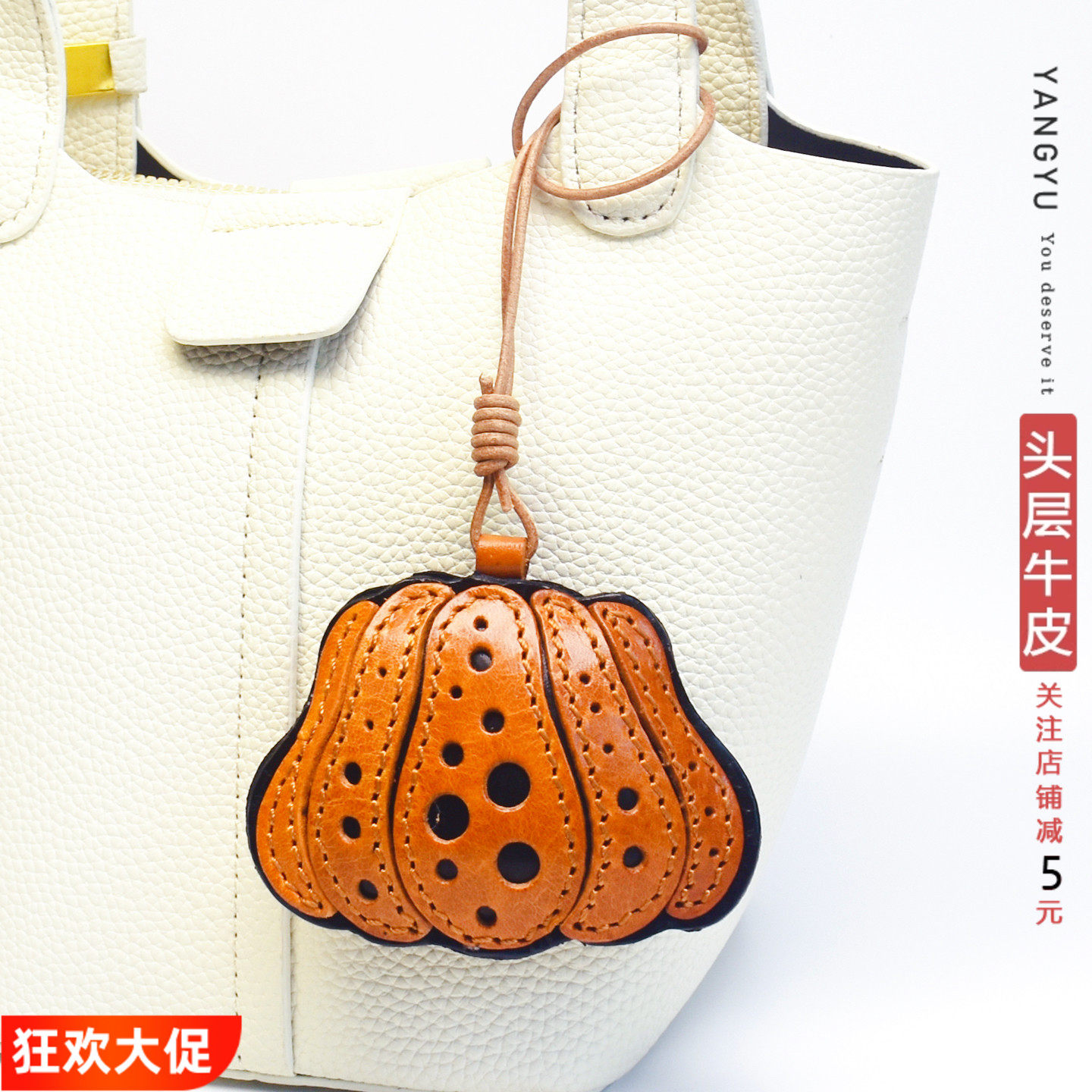 洋芋『好运南瓜』真皮包挂件汽车挂饰牛皮钥匙扣手帐毕业季伴手礼