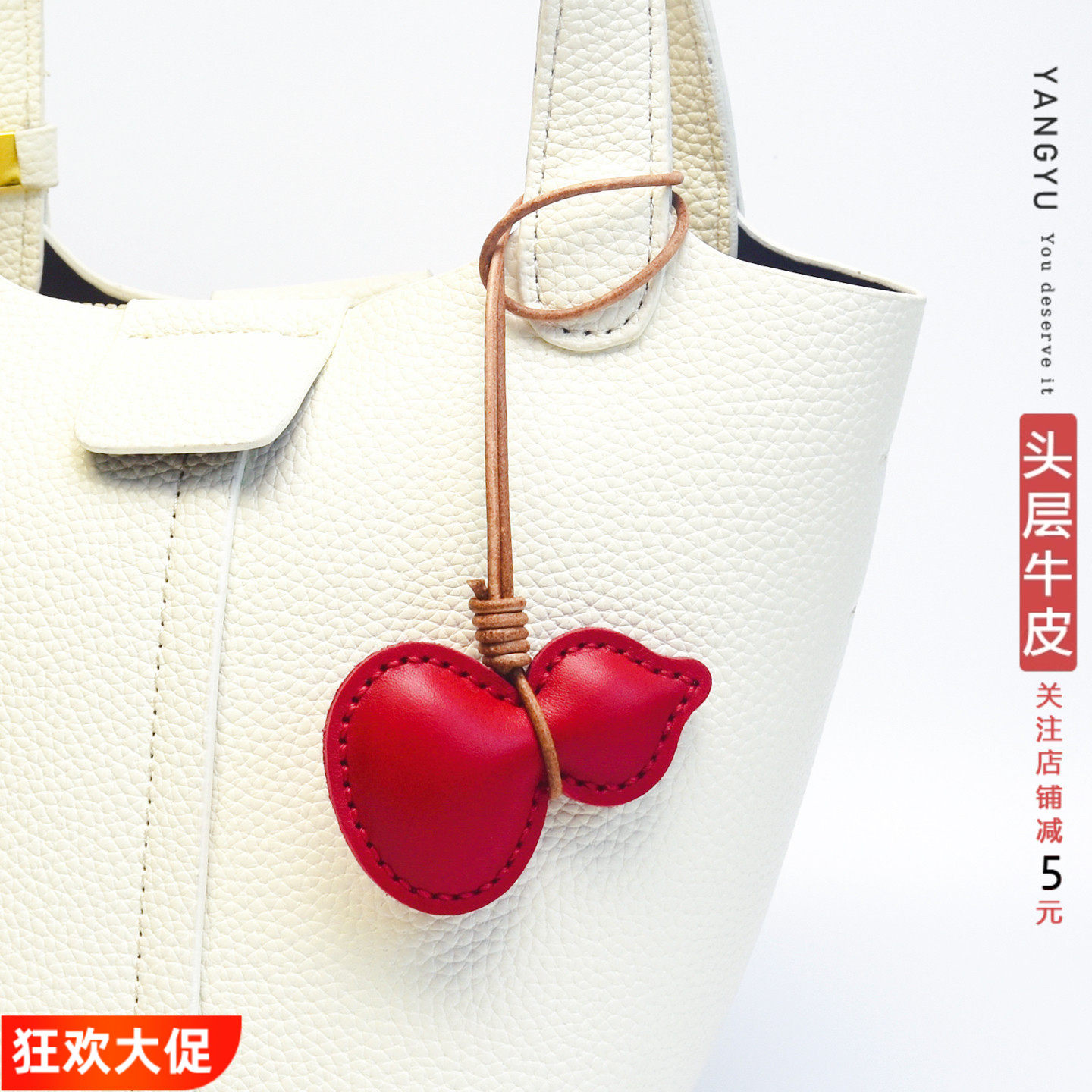 【富到牛油】水果头层牛皮包挂件真皮钥匙扣挂饰奔驰宝马汽车吊饰