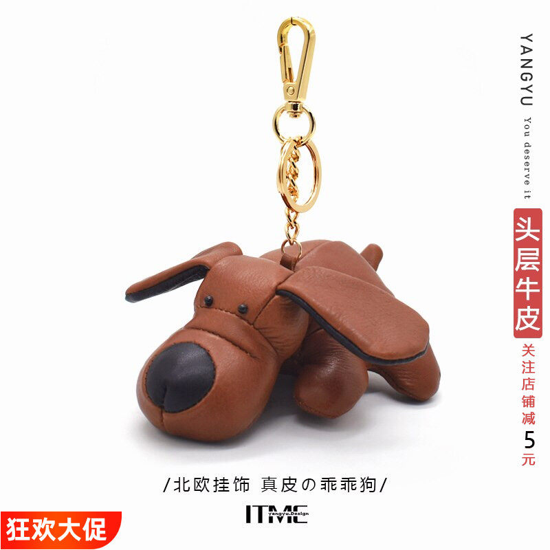 真皮立体小狗~北欧ins真皮包挂件手工牛皮汽车钥匙扣玩偶创意礼物