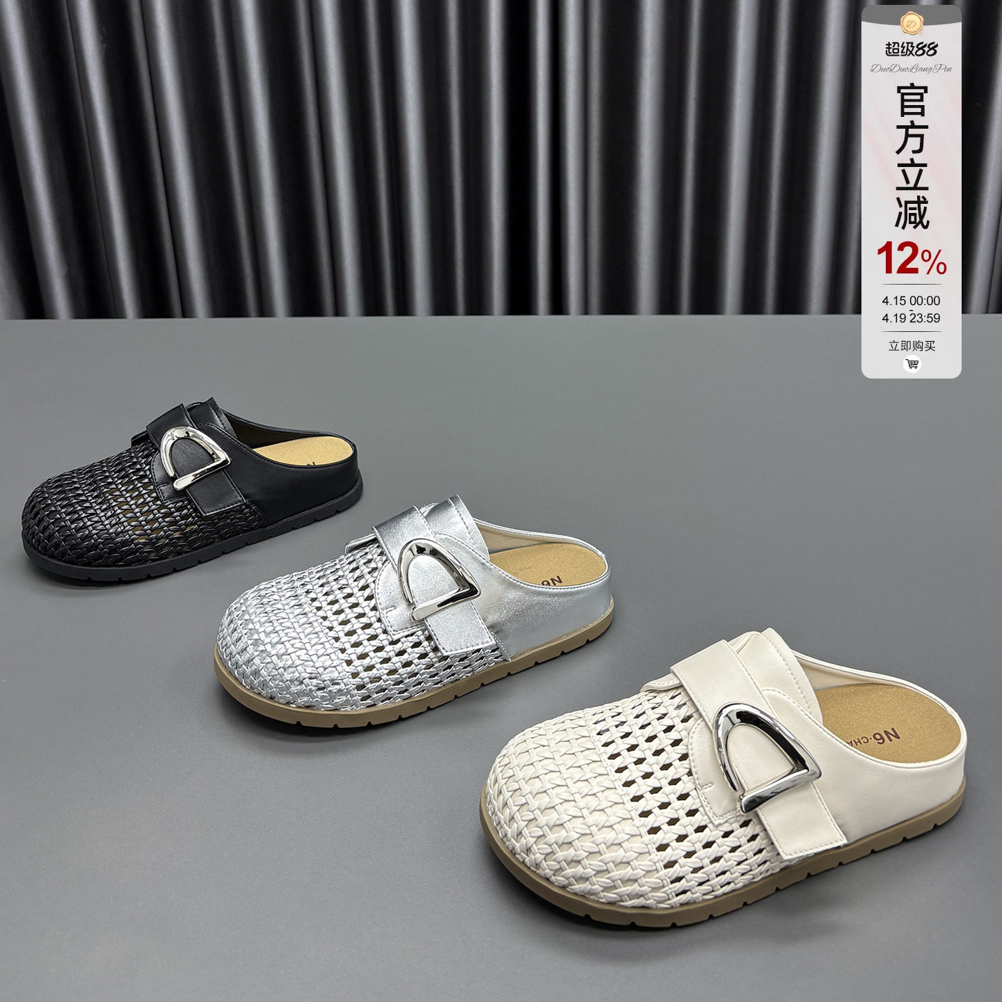 相伴真皮包头半拖鞋女外穿2026夏季新款镂空软底防滑妈妈时尚拖鞋