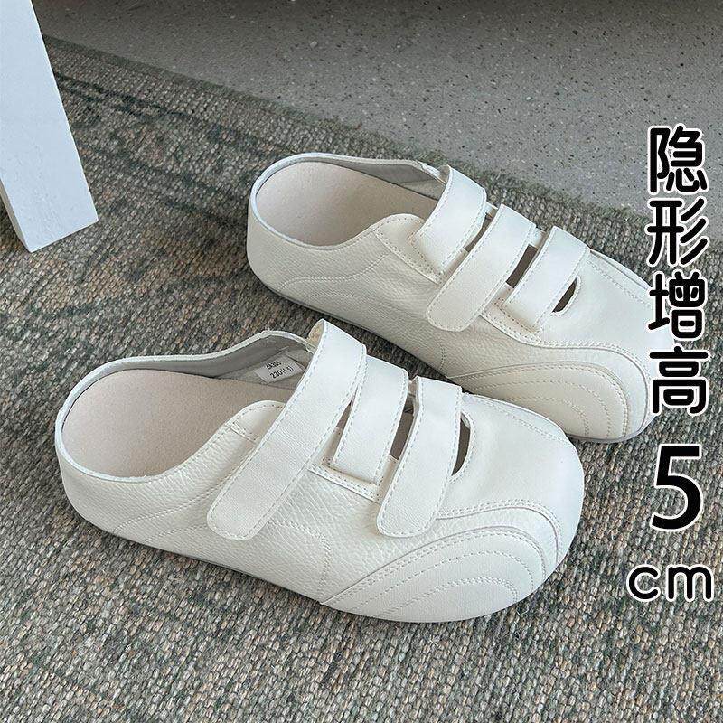 香港真皮包头半拖鞋女外穿2026春季新款一脚蹬小白鞋魔术贴德训鞋
