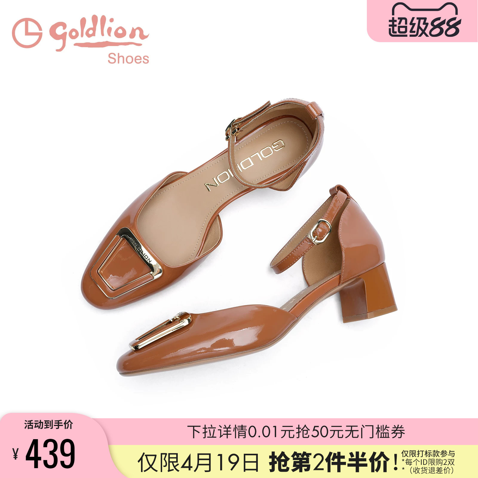 金利来中空单鞋女2025夏季新款女鞋时尚百搭通勤真皮包头粗跟凉鞋
