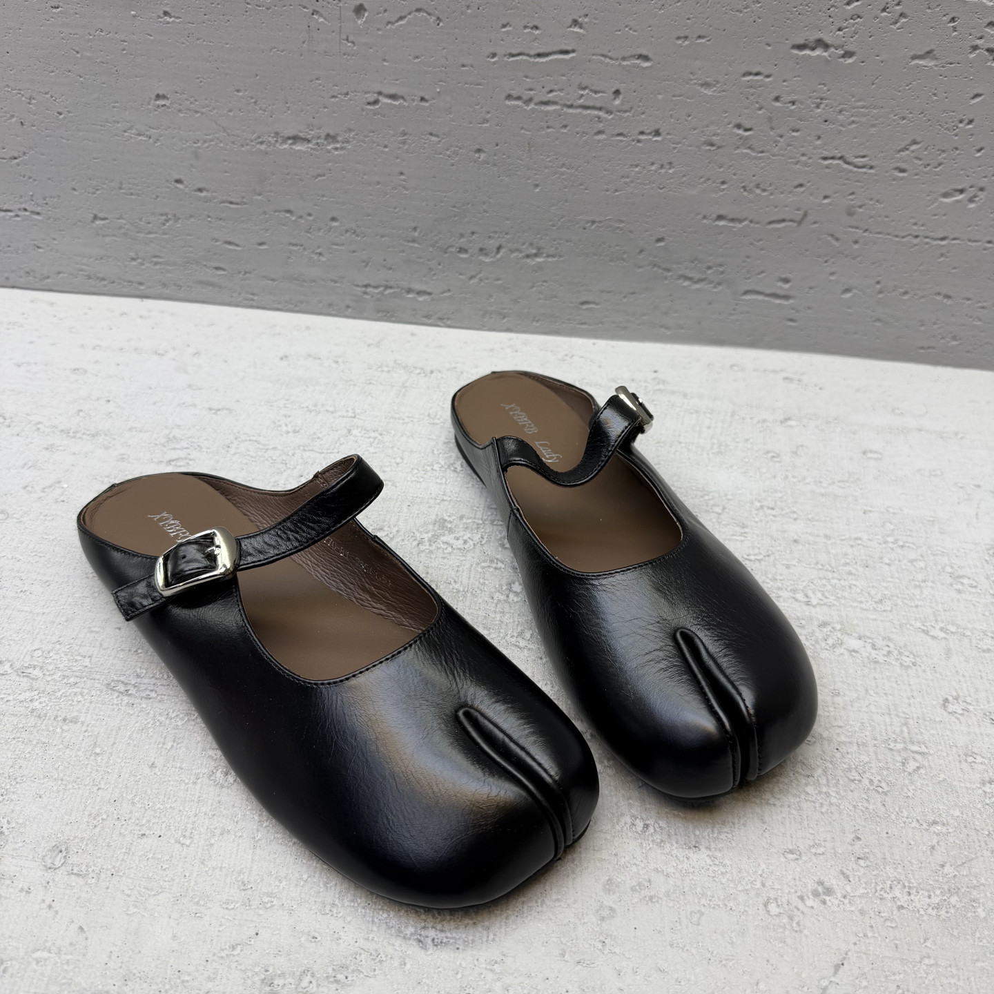 欧洲站欧货女装2026夏季新款真皮包头拖鞋平底一字带扣分趾半拖鞋