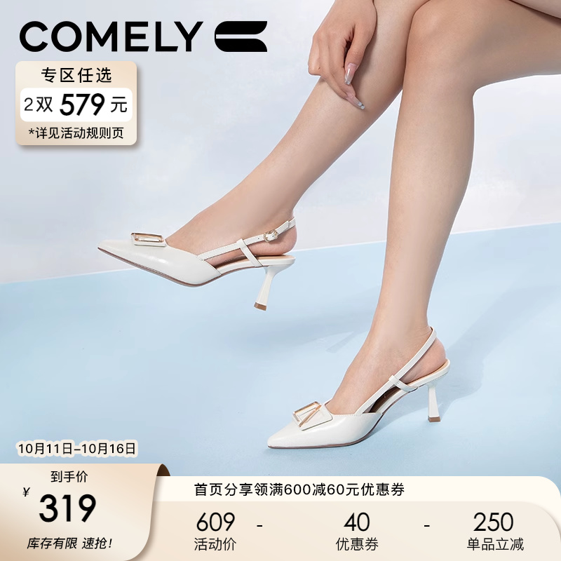 康莉商场新款真皮包头凉鞋女24年春季方扣尖头细跟高跟鞋时尚女鞋