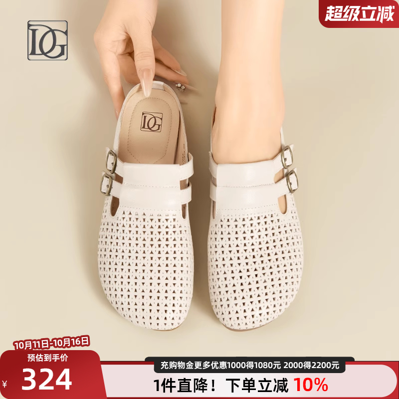 品牌真皮包头拖女夏季2025新款凉拖软底孕妇半拖鞋平底网面洞洞鞋