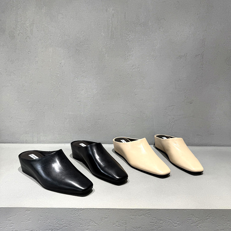 欧洲站真皮包头拖鞋女2026年春夏新款欧货胎牛皮方头增高坡跟半拖