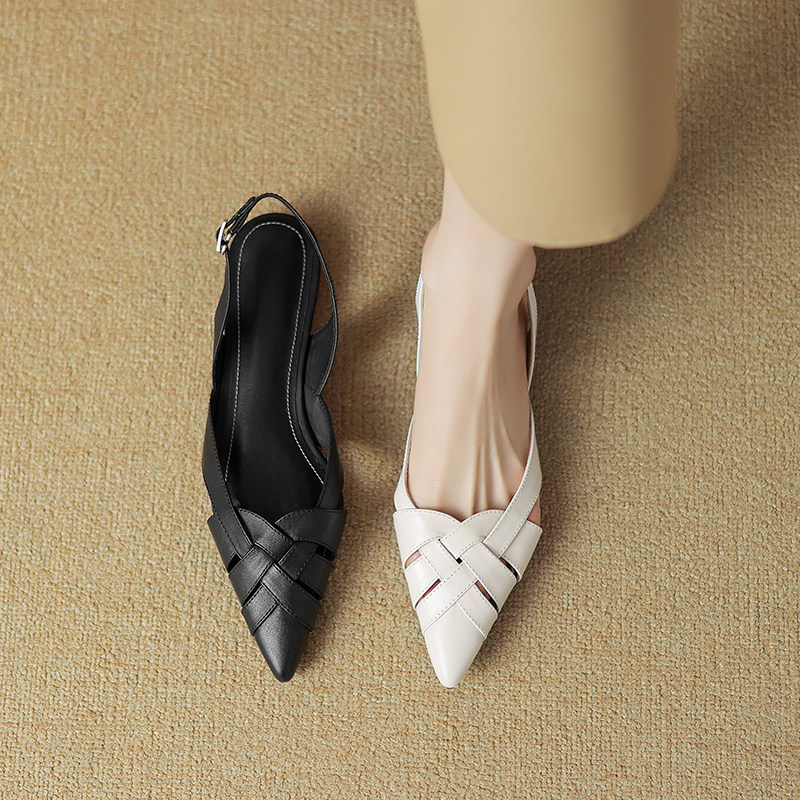 小丸子 真皮包头凉鞋女2025新款夏季尖头平底鞋时尚牛皮低跟单鞋