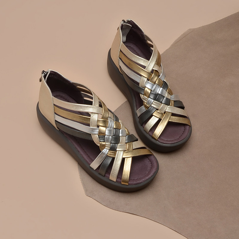 一席之地厚底真皮包跟女鞋2025年夏新品细带组合编织休闲露趾凉鞋