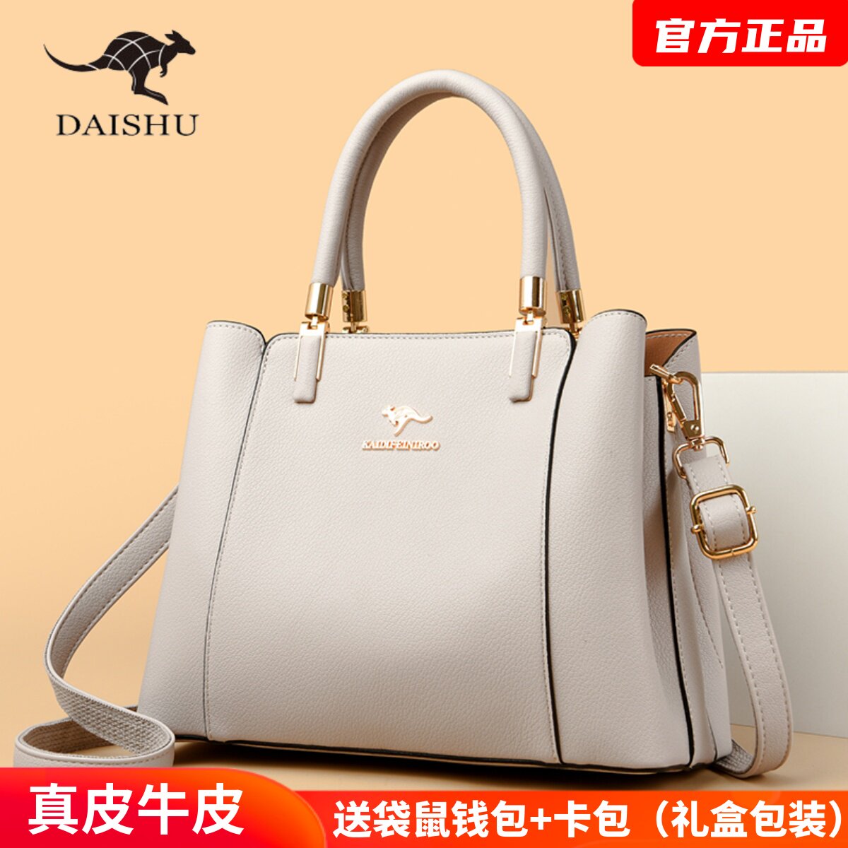 袋鼠专柜女包真皮手提包2025新款大气中年妈妈包女士斜挎包牛皮包