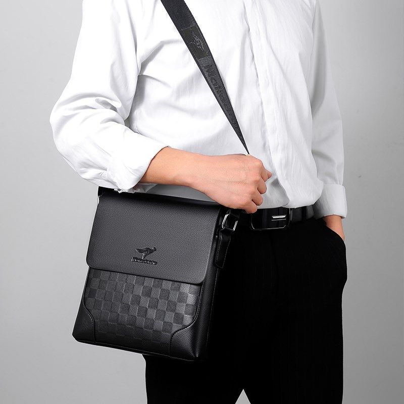 佧蒂袋鼠男士单肩斜挎大容量复古皮包休闲运动手提商务休闲肩包男