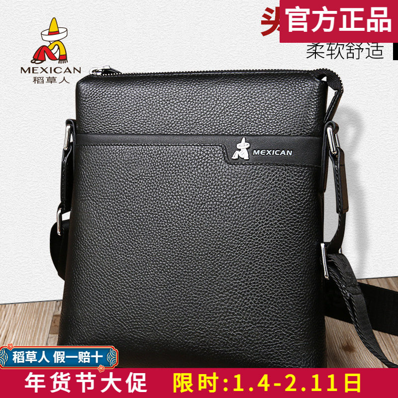 稻草人男包单肩包斜挎真皮背包头层牛皮休闲男士包包商务竖款皮包