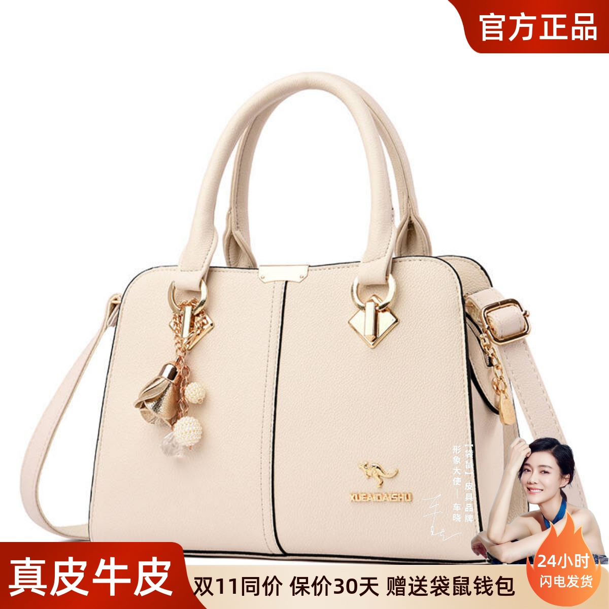 袋鼠真皮包包女2025新款高级感洋气时尚女士手提包中年妈妈斜挎包