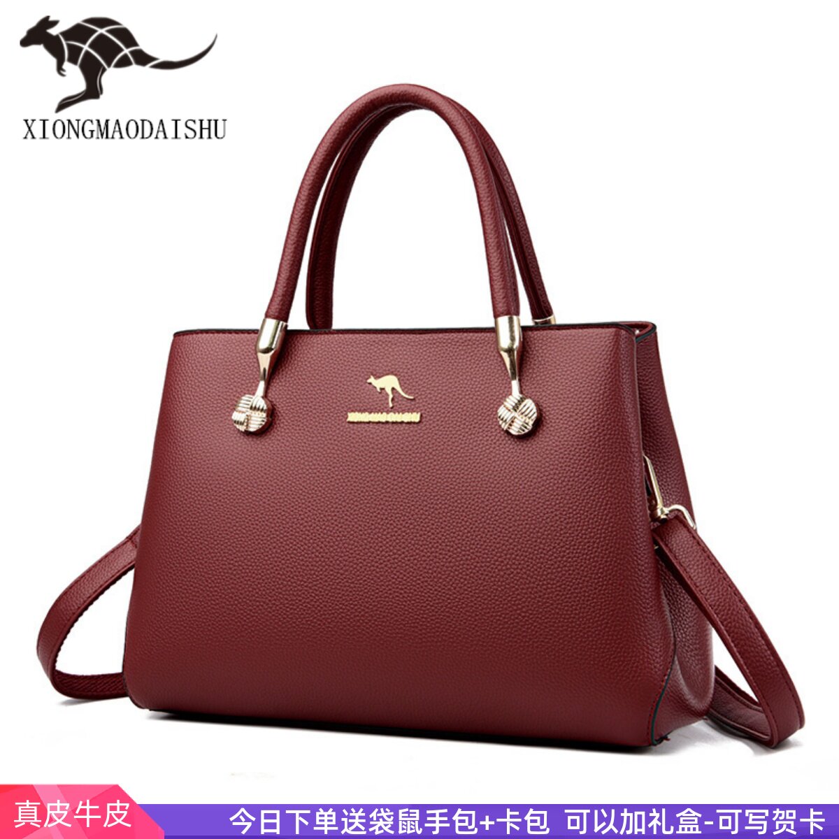 袋鼠真皮包包女2025新款送妈妈礼物实用手提包中年大气女式斜挎包