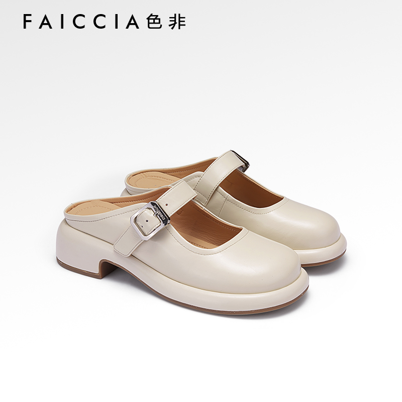 商场专柜正品2025新款色非极简半拖穆勒鞋真皮包头粗跟WR-A711B