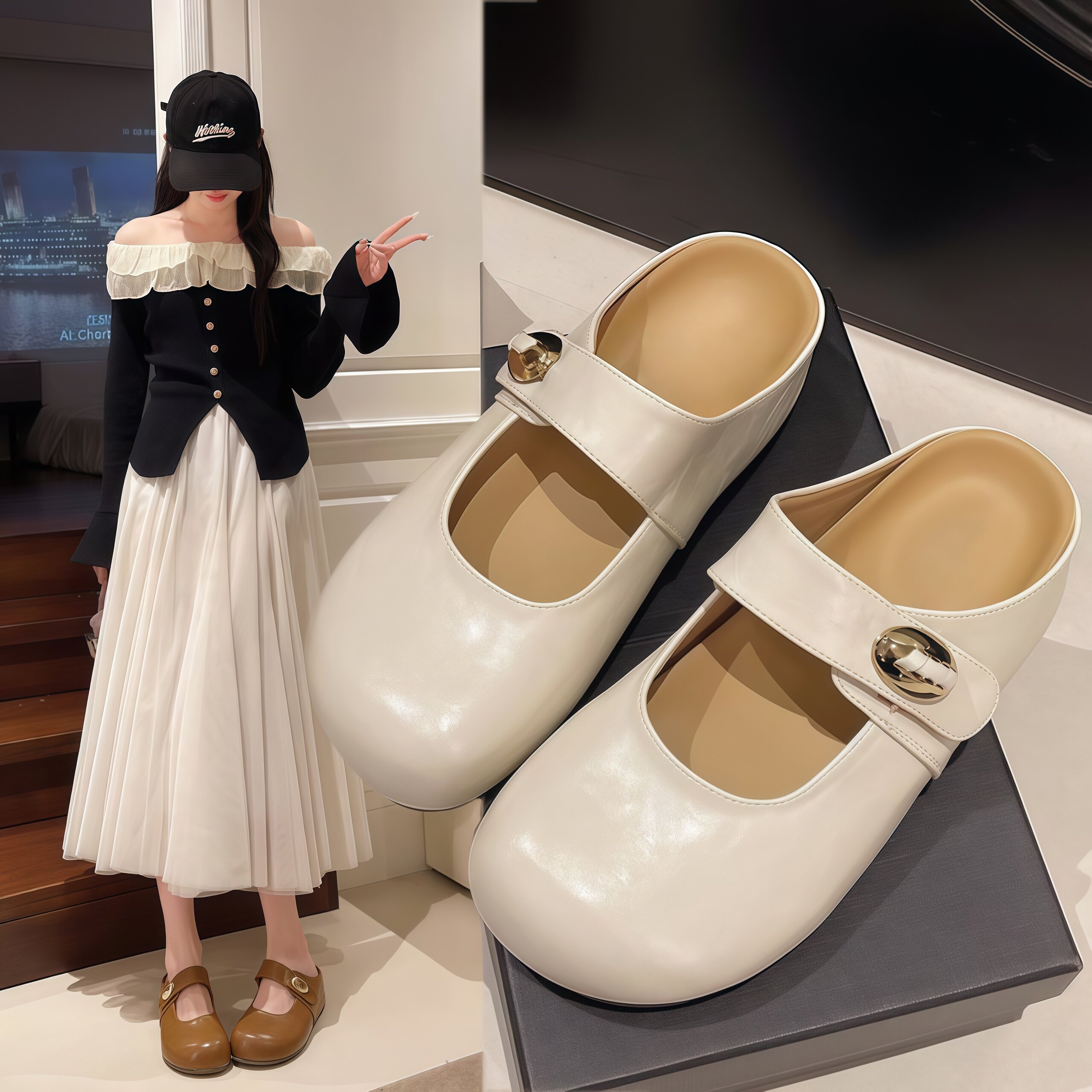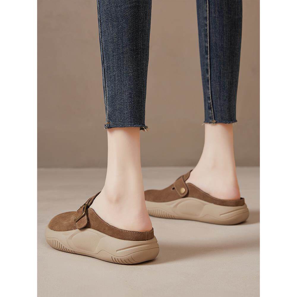 小丸子 厚底真皮包头半拖鞋女2024春夏新款外穿懒人一脚蹬勃肯鞋