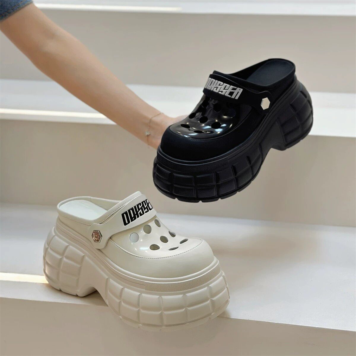MILLIE'S/妙丽新款水钻镂空增高厚底洞洞鞋时尚真皮包头半拖外穿