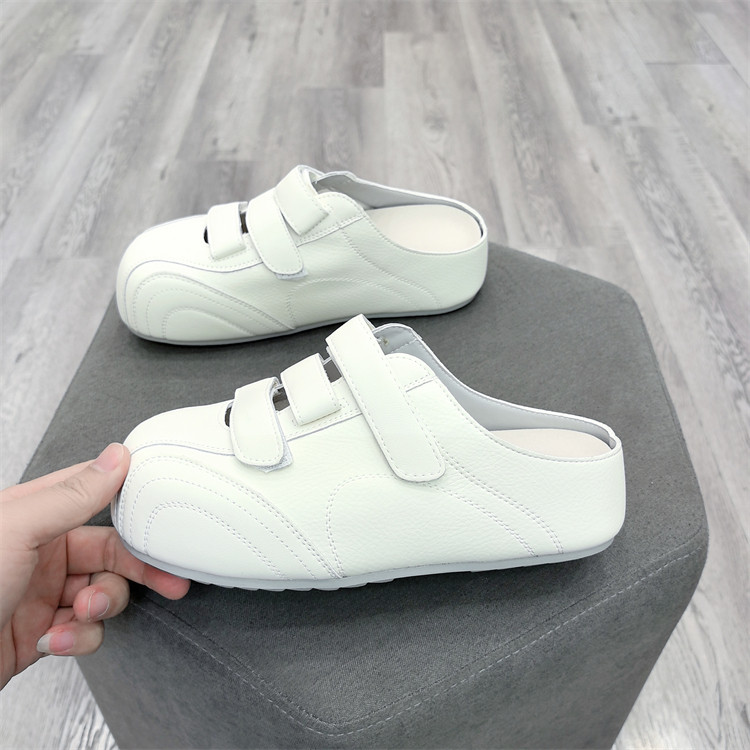 冰洁2026春夏新款女鞋真皮包头厚底魔术贴一脚蹬防滑外穿拖鞋2515