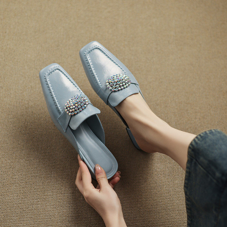 真皮包头半拖鞋女2025夏季新款懒人一脚蹬仙女风百搭平底外穿女鞋