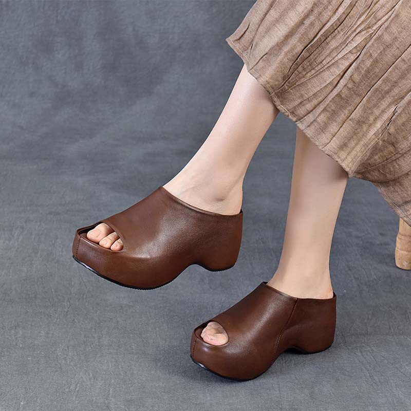 2026新款以一夏季松糕厚底鱼嘴外穿拖鞋时尚百搭室外皮包底复古凉