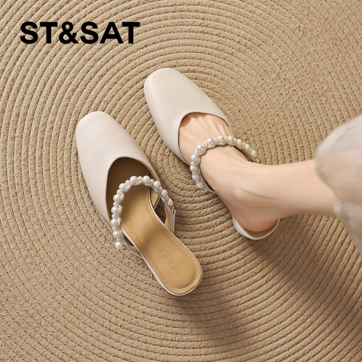 星期六真皮包头半拖鞋2026新款夏季外穿女款凉拖一脚蹬绝美女鞋子