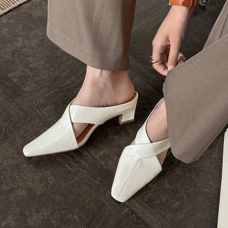 真皮包头半拖鞋女外穿2025夏季网红法式懒人一脚蹬穆勒鞋粗跟凉拖