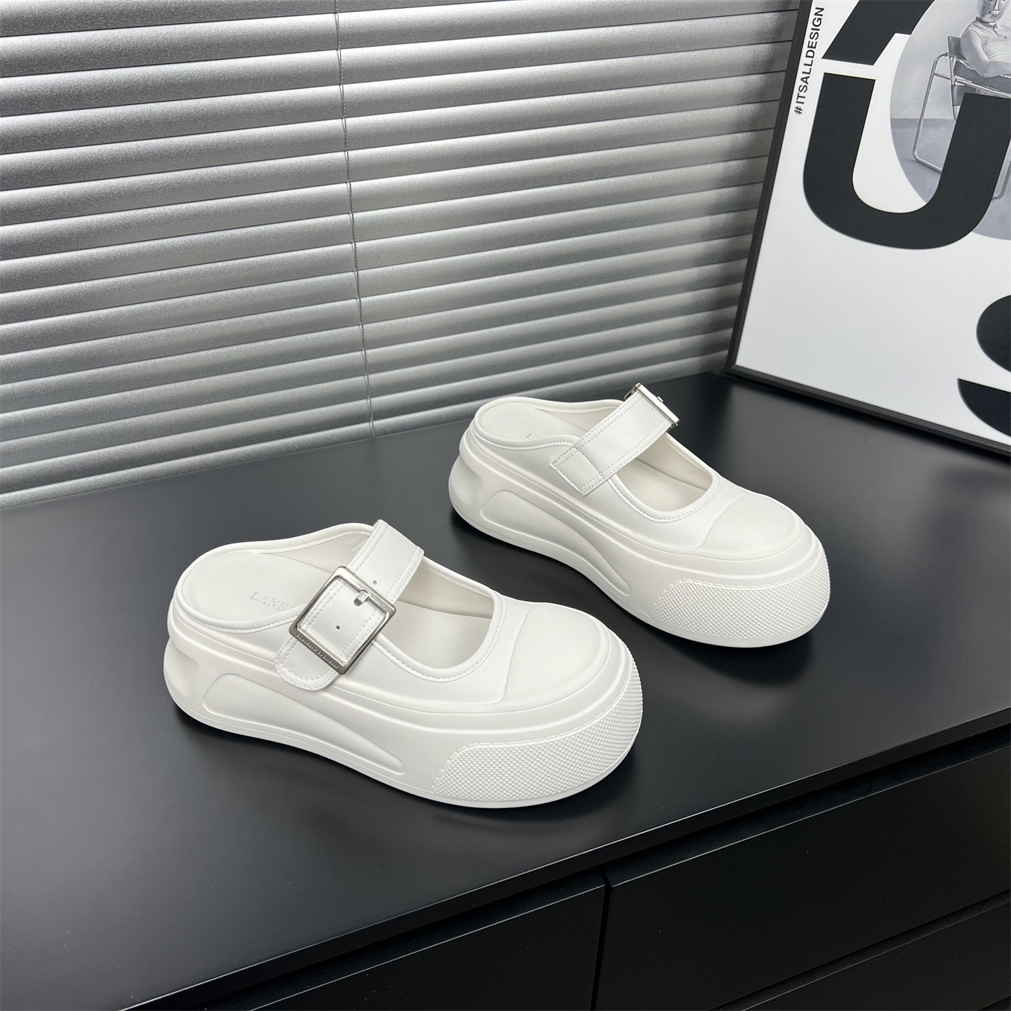 【欧货】真皮包头半拖鞋女外穿2026厚底增高水钻扣一脚蹬休闲凉鞋