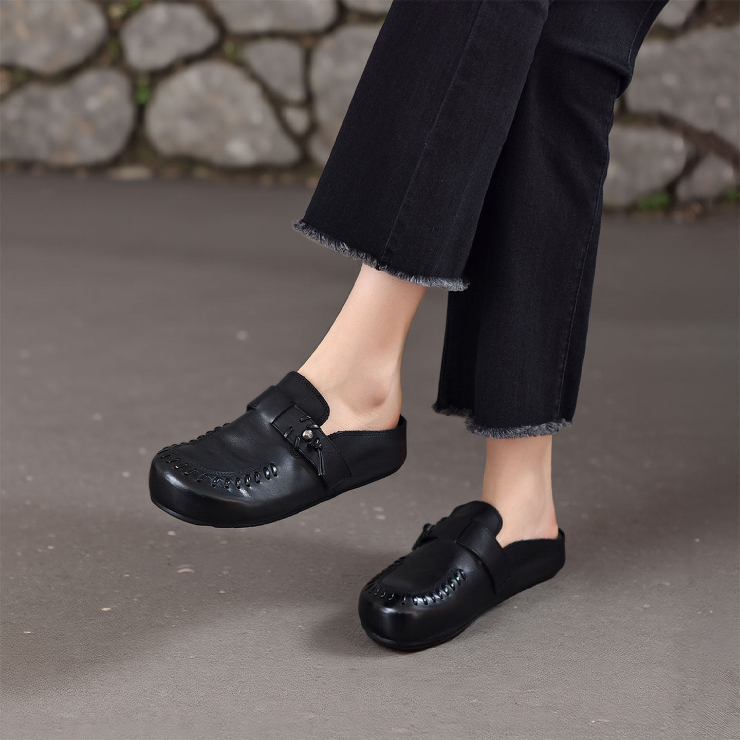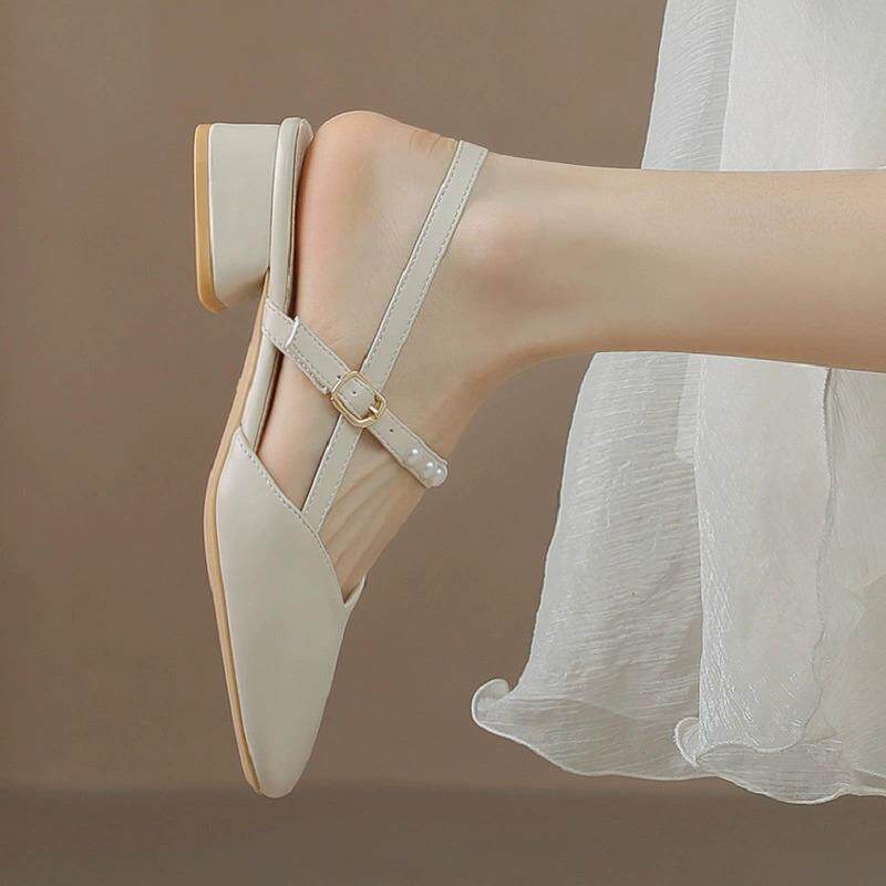 小丸子 仙女风真皮包头半拖鞋女2025夏季新款外穿一脚蹬平底单鞋